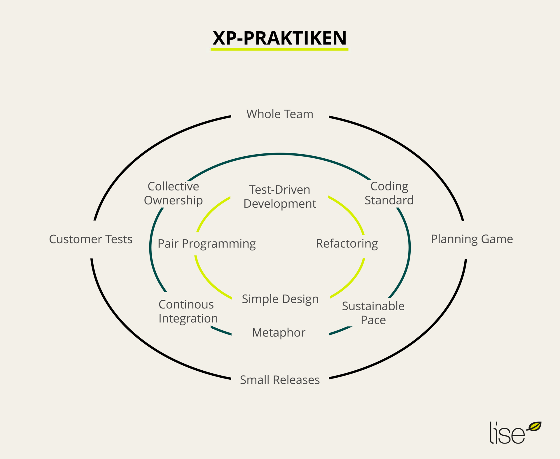 Habt dabei immer das agile Mindset im Hinterkopf. Die Praktiken dienen vor allem dazu, die im XP definierten Werte in der Praxis umzusetzen. Wir nutzen einige der Praktiken für unsere Produktentwicklungen. Dadurch können unsere Teams eine spürbare Qualitätssteigerung erzielen.